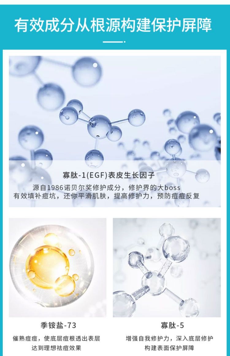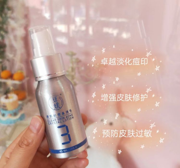2.“融合多种自然植物萃取成分,帮助修护舒缓肌肤,特有凝润水漾质感,改善痘痘等肌肤不适问题,助力痘痘肌肤变得滑嫩细致,让肌肤呈现清爽细腻的状态。”